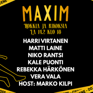 Jo perinteeksi muodostunut suosittu Rokkia ja Rikoksia – rikoskirjallisuutta ja musiikkia yhdistävä kirjallisuus- ja kulttuuritapahtuma järjestetään jo viidennen kerran Kuopiossa ystävänpäivänä 14.2.2026 Rokkia ja rikoksia tapahtuman pääajatus on nostaa esille suomalaisen rikoskirjallisuuden parhaimmistoa...