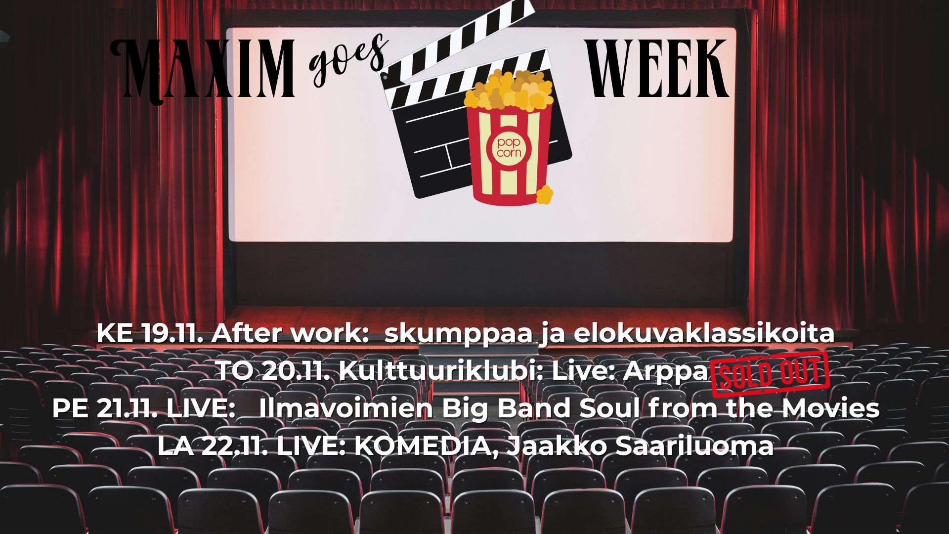Tällä viikolla Maxim goes Movies ja aftereillakin nautitaan vanhoista klassikkoelokuvista sekä elokuvateemaisista drinkeistä. Myös baarihenkilökunta tiskin takana saattaa näyttää erehdyttävästi tunnetuilta elokuvatähdiltä.