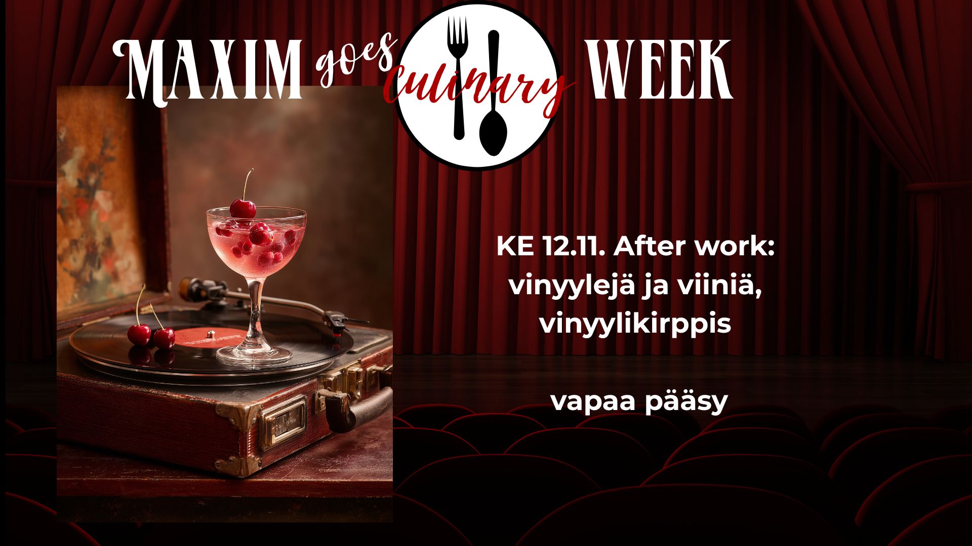 Maximin Afterwork Loungessa ollaan tällä viikolla viikkoteeman mukaan kulinaristisissa tunnelmissa. Viinejä ja viinyylejä -illassa voit tulla maistelemaan ihania syksyn viinejä sekä kuuntelemaan vanhoja vinyylejä.