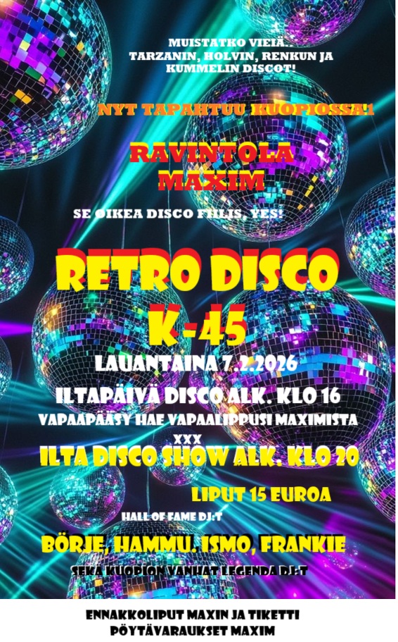 RETRO DISCO – Ravintola Maxim Kuopio, lauantaina 7.2.2026