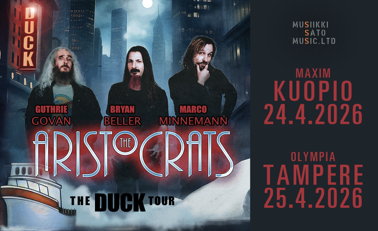 Progressiivisen rockin 2000-luvun ilmiöihin lukeutuva The Aristocrats palaa keväällä 2026 Suomeen. Viimeisintä ”Duck” –albumiaan juhlistava voimatrio esiintyy Helsingin Vanhalla Ylioppilastalolla, Tampereen Olympiassa sekä Kuopion Ohjelmaravintola Maximissa. Kuopion keikan lipunmyynti käynnistyy tämän viikon aikana.