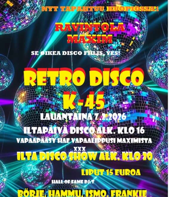 RETRO DISCO – Ravintola Maxim Kuopio, lauantaina 7.2.2026